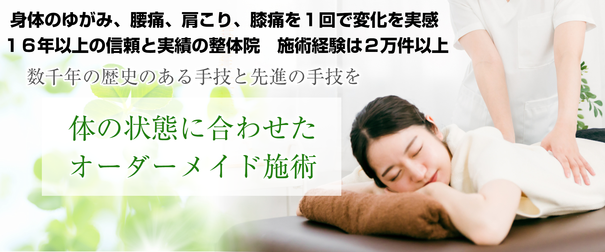 当院は高度な技術を低価格で提供し、血流を促しながら筋肉をほぐし、独自の手技で頭蓋骨・脊椎・骨盤・骨格を調整します。